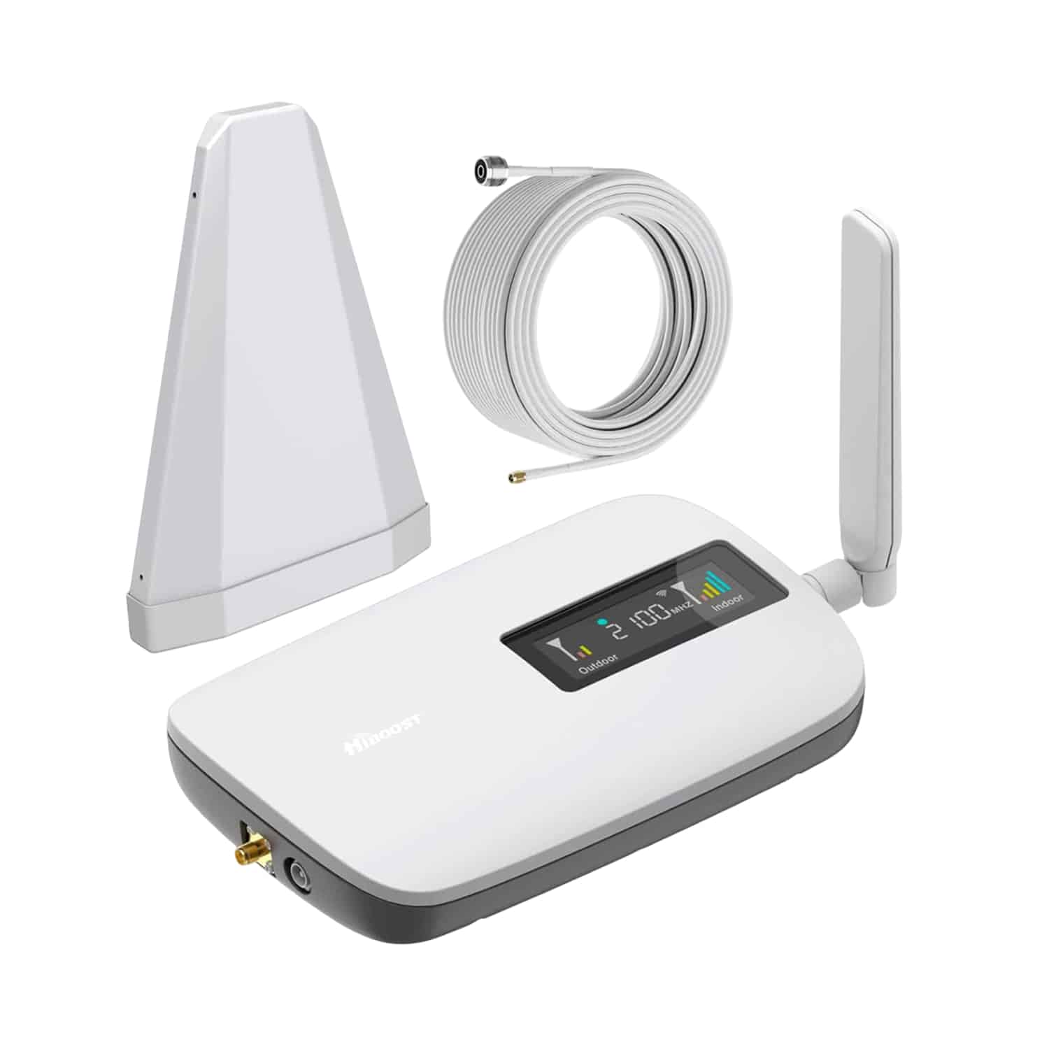 The HiBoost 4,000 Mobile Phone Signal Booster rounds out our top five with its expanded 4,000 square foot coverage capacity, designed specifically for larger homes, offices, shops, and metal buildings. This enhanced model covers 2-3 rooms effectively, making it friendly for multi-room and multi-user environments where several people need simultaneous connectivity.