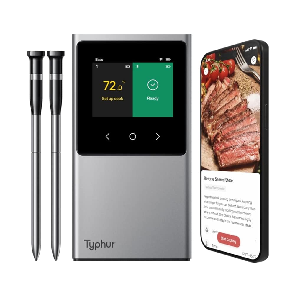 The Typhur Bluetooth Meat Thermometer stands as the premium choice for discerning cooks who demand professional-grade precision backed by prestigious industry endorsements. Recognized by TIME, USA Today, Bon Appetit, CNET, and America's Test Kitchen, this high-end device delivers exceptional performance that justifies its premium positioning in the competitive wireless thermometer market.