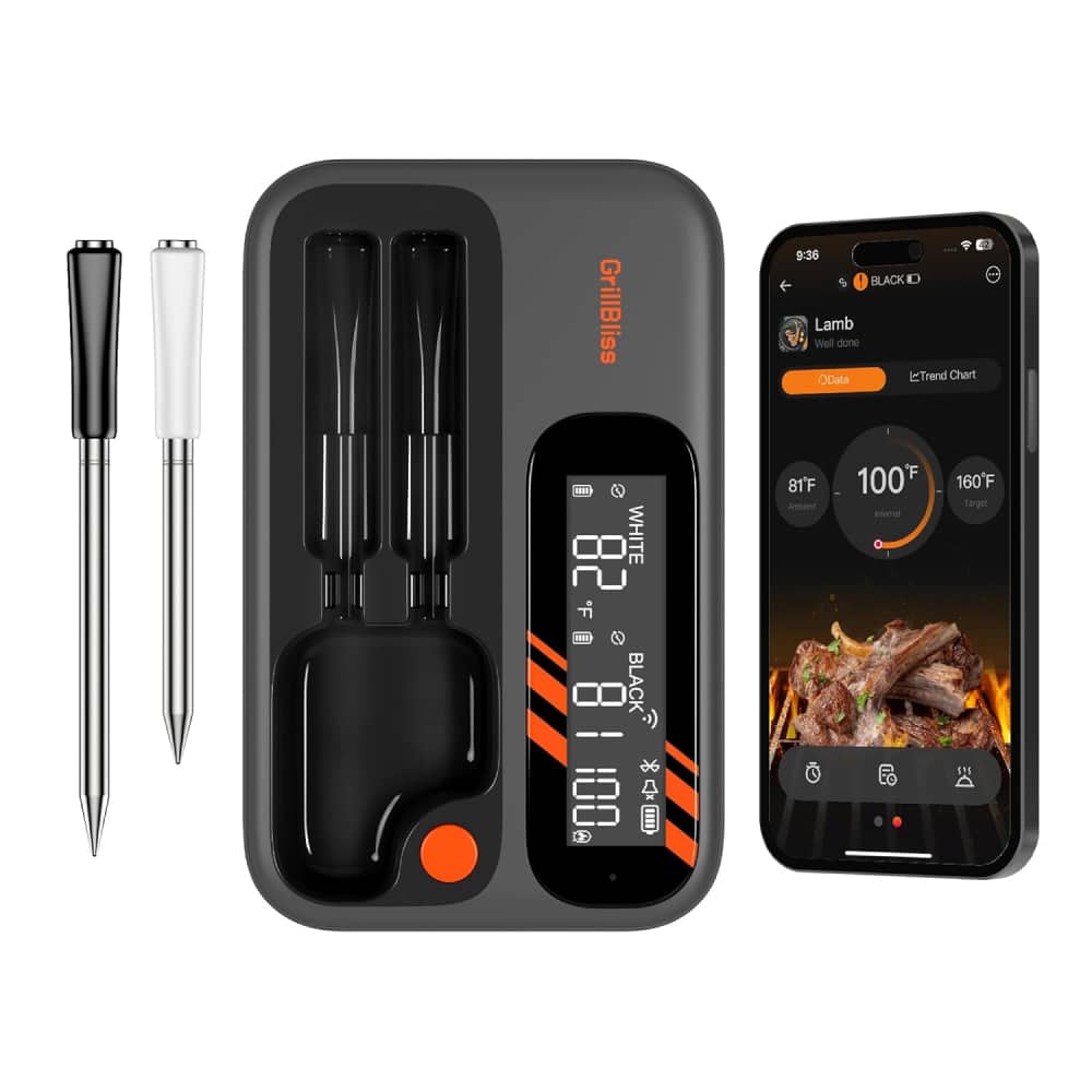 The GrillBliss Bluetooth Meat Thermometer offers compelling value through dual-mode connectivity combining Bluetooth 5.4's 328ft range with 5G WiFi for unlimited remote monitoring. The device intelligently stores 80 minutes of offline data, which automatically syncs upon WiFi reconnection, ensuring you never miss critical cooking details even during temporary connection losses.