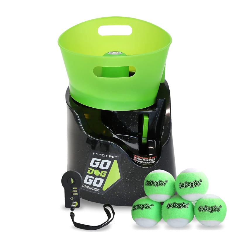 - Includes 5 GoDogGo tennis balls and AC adapter