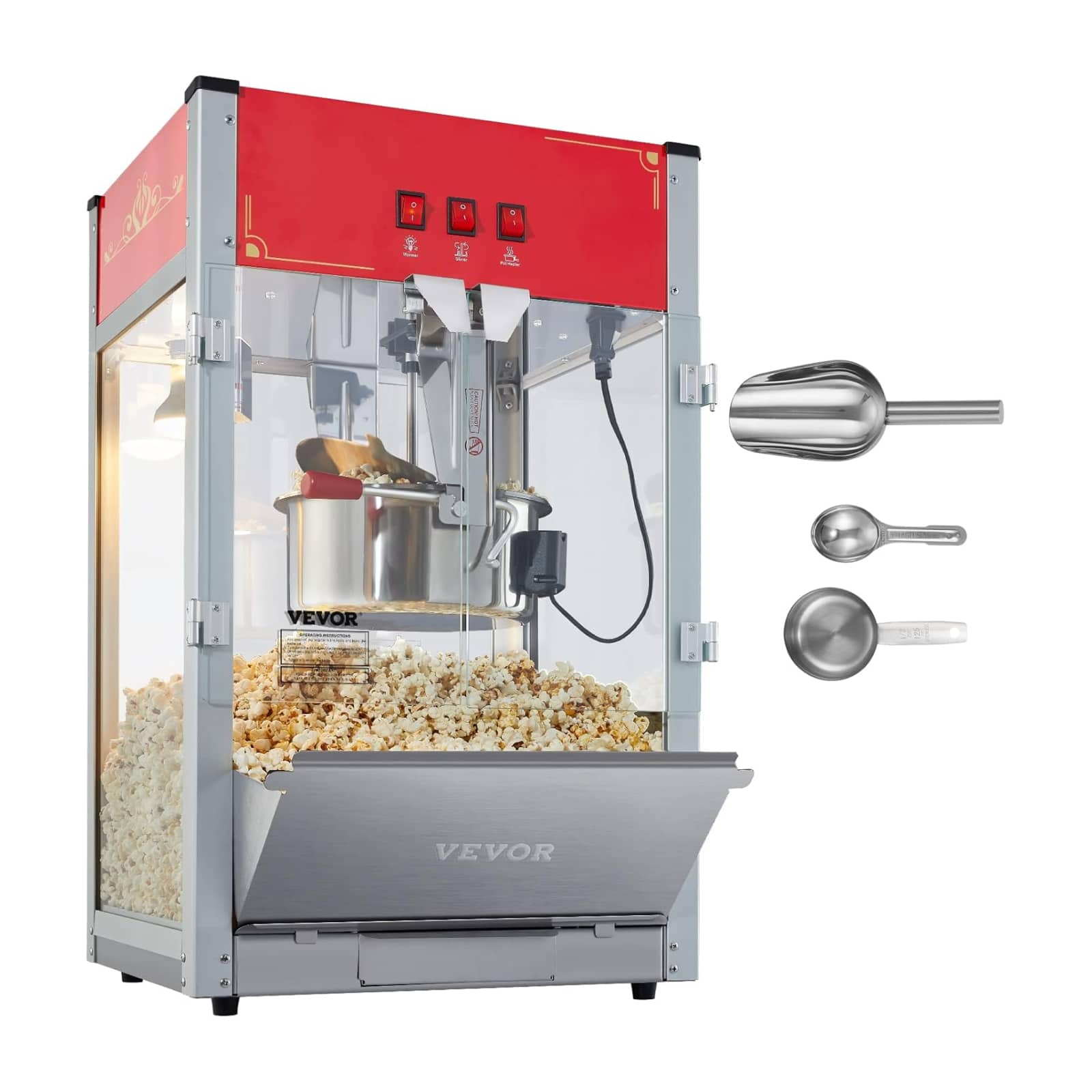 VEVOR's commercial-grade popcorn maker brings the authentic movie theatre experience directly into your home entertainment space. This sturdy machine features a classic design reminiscent of professional cinema equipment, instantly elevating any game room or home theatre setup with its impressive presence and functionality.